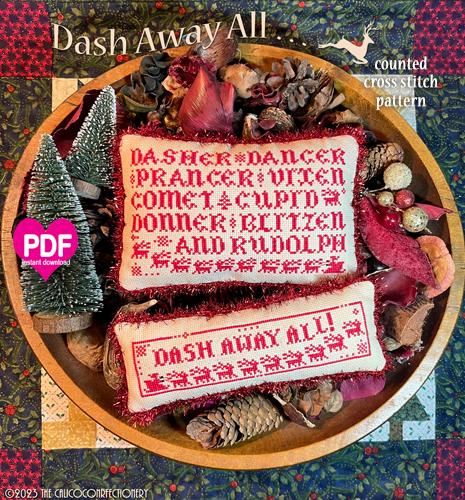 ©2023 "Dash Away All" counted cross stitch pattern by the CalicoConfectionery.